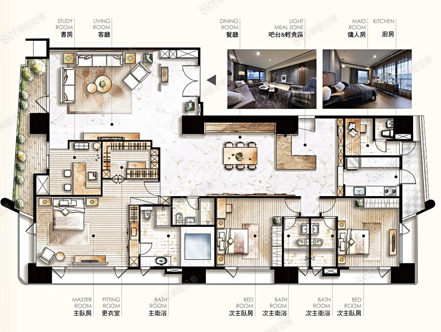 美術館裝潢景觀高樓明亮兩房
