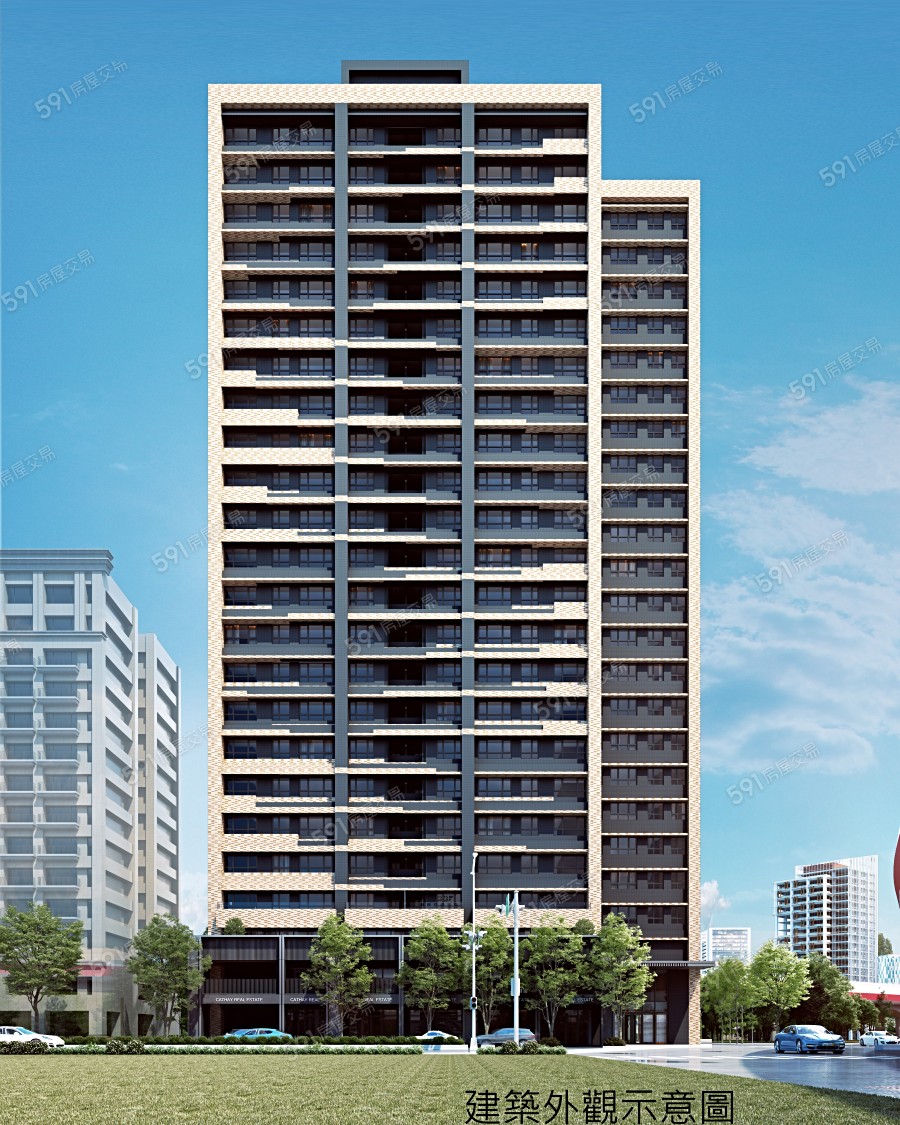 規劃地上24樓、地下5樓地標建築,規劃23坪2房、37坪3房、42坪3房,共210戶住家與9戶店面,1樓4.2米、2樓3.6米、3~24樓3.4米。推薦主力坪型三房42坪