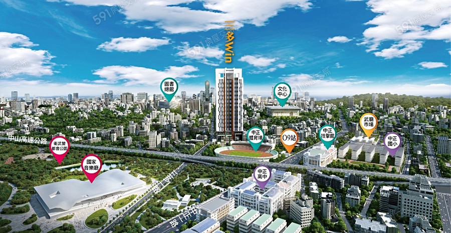 2. 2.基地周邊多為1~5F矮房,可看市景及公園綠景。