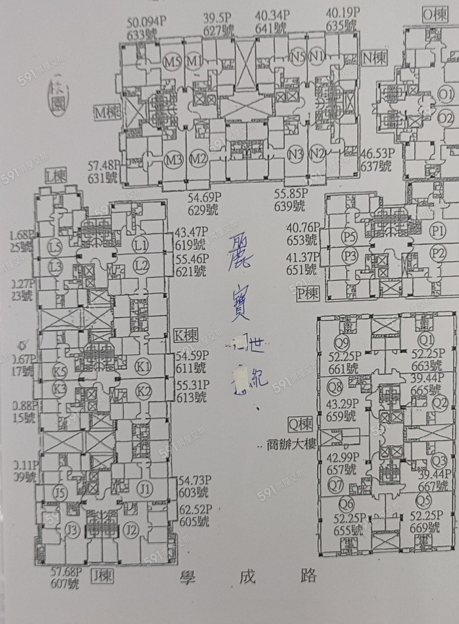 總共有616戶包含20戶店面這社區有三房到五房三房到五房的坪數為42坪到68坪不等主力格局前後陽台面學成路