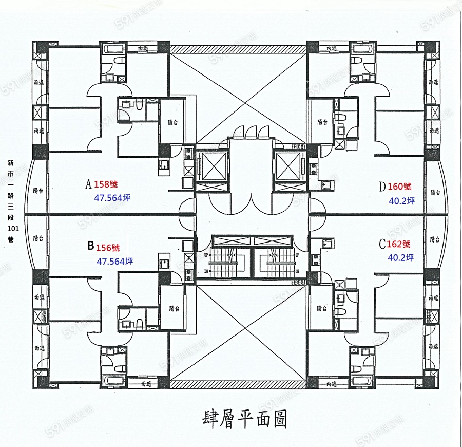共有1棟59戶,分別是A/B/C/D棟(15層,1梯4戶)