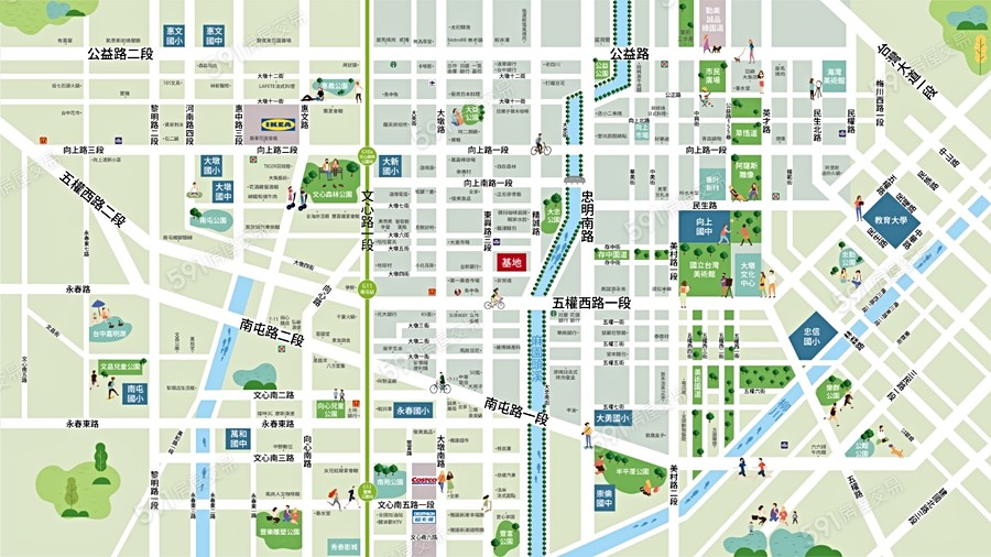 2. 環境機能:距離捷運南屯站(文心路)公車站約824公尺,方便居民出行和搭乘公共運輸工具;距離小學館約790公尺,方便孩子就學。