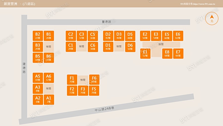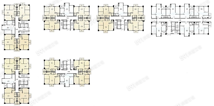 社區總共有A、B、C、D、E、F棟分別有一層五戶和七戶樓層分別有13樓和14樓