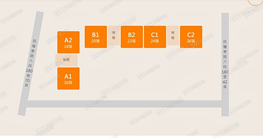 一、ABC三棟、各有10層二、一層二戶一部電梯
