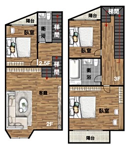 3房2廳3衛56.75坪