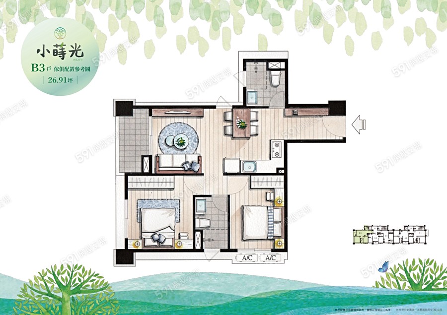2房/26.9坪