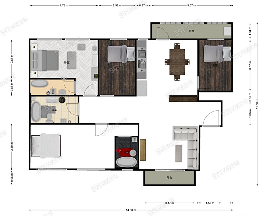 3房/66.3坪