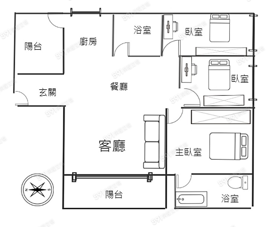 3房/55.1坪